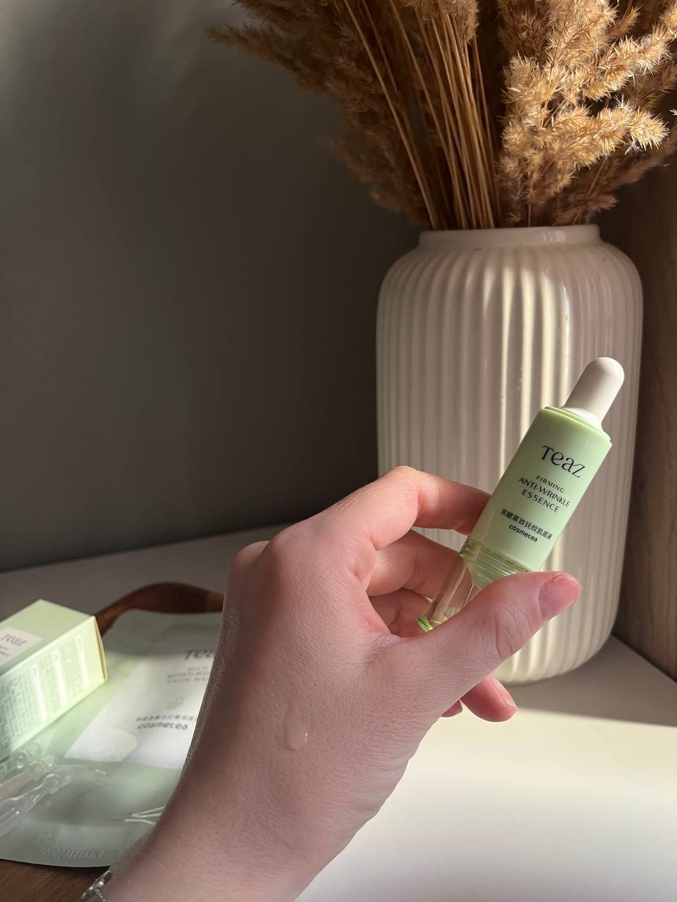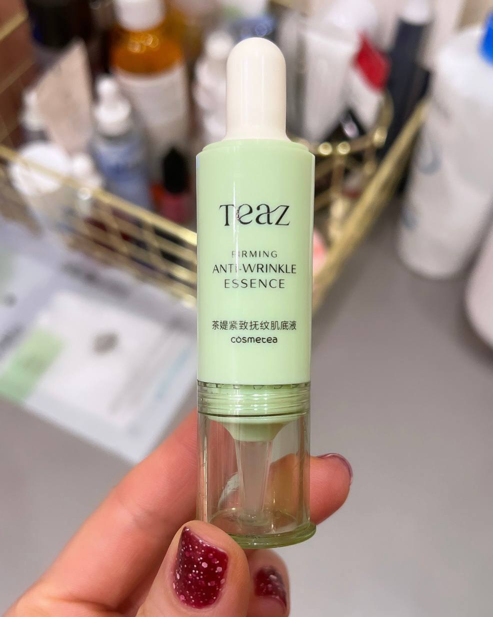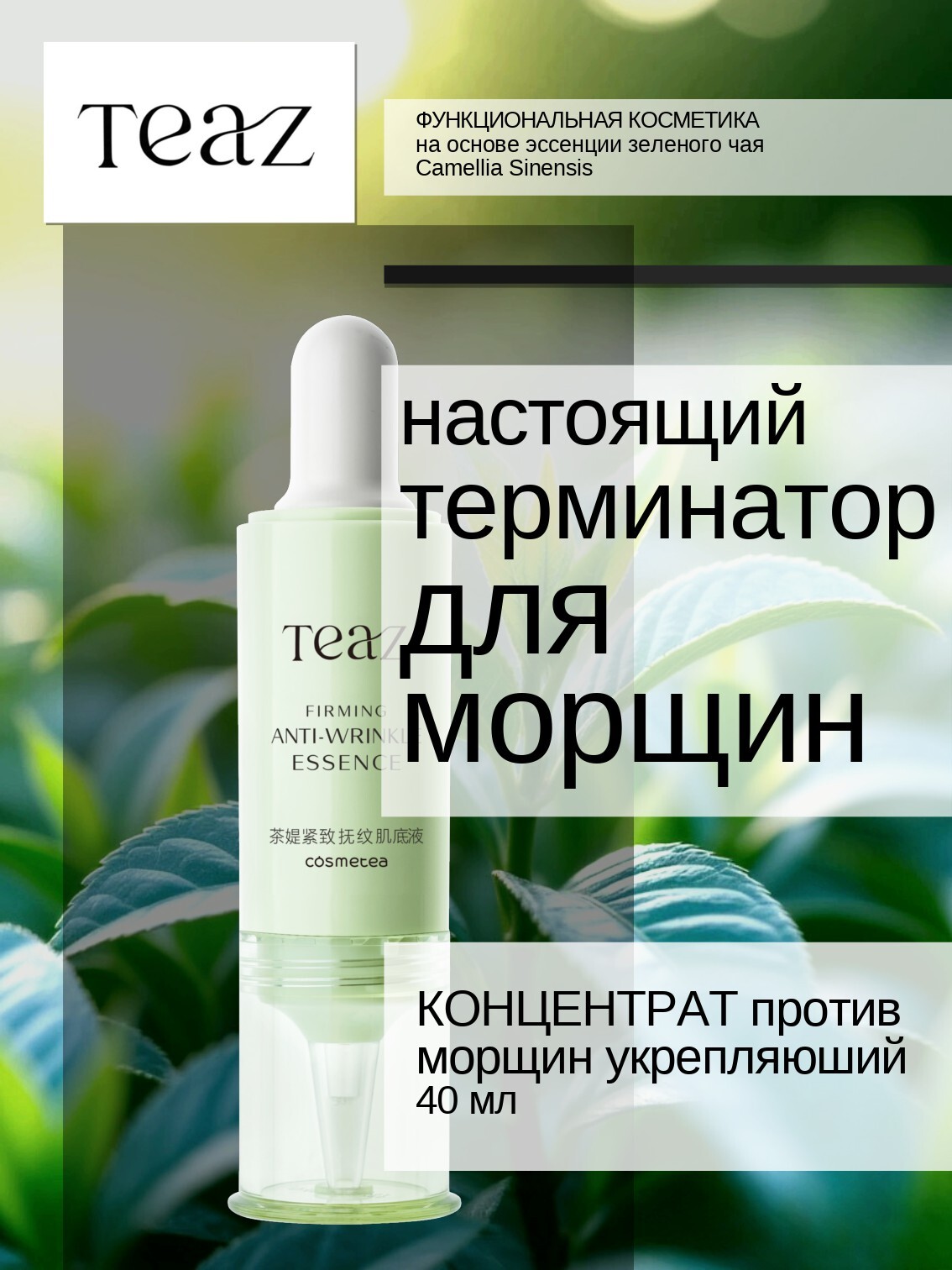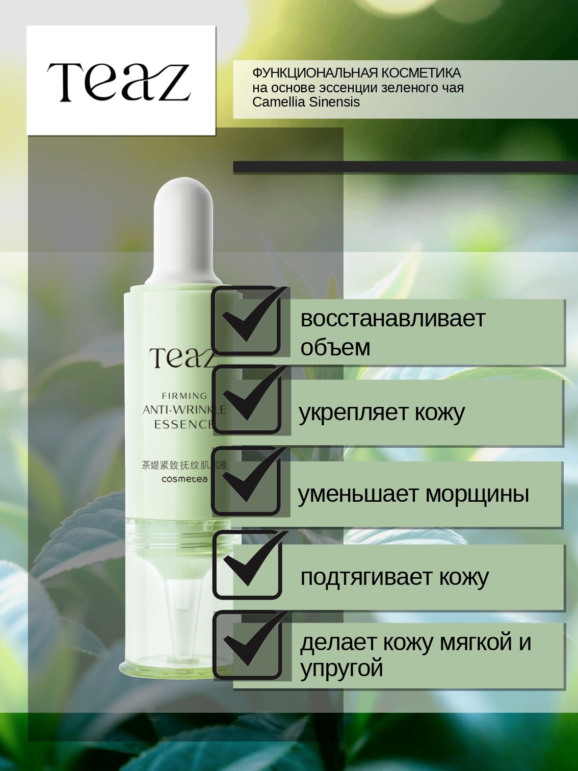 Формула TEAZ содержит комплекс состоит из 5%-эссенции полифенолов, получаемых из китайского чая, керамидов, витамина С, натуральных пептидов и растительного сфингозина. Он насыщает кожу влагой и способствует ее удержанию в коже, подтягивают кожу, сокращает мелкие морщинки, делает кожу упругой и эластичной. Ценные масла дополнительно смягчают, разглаживают и глубоко увлажняют кожу.